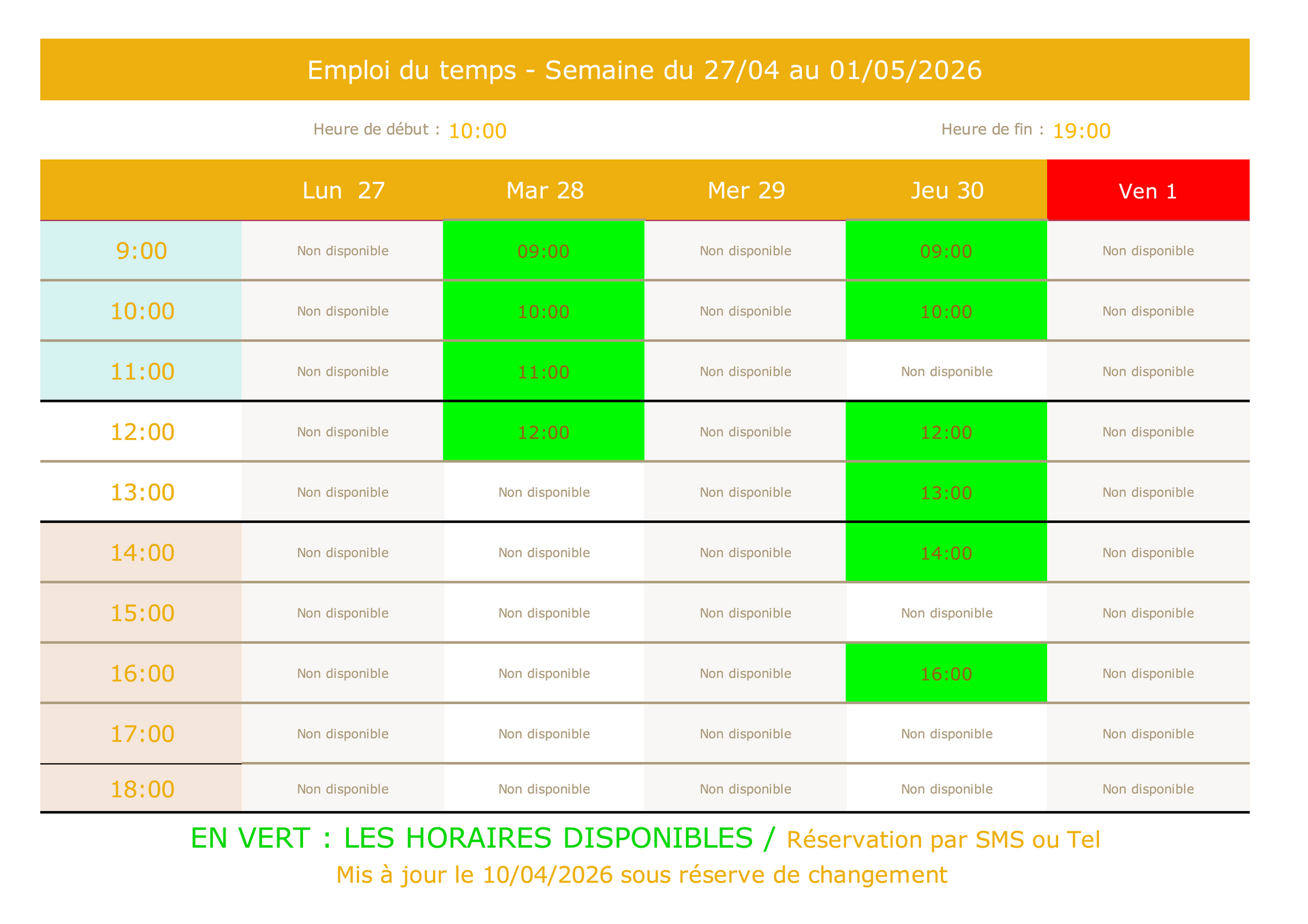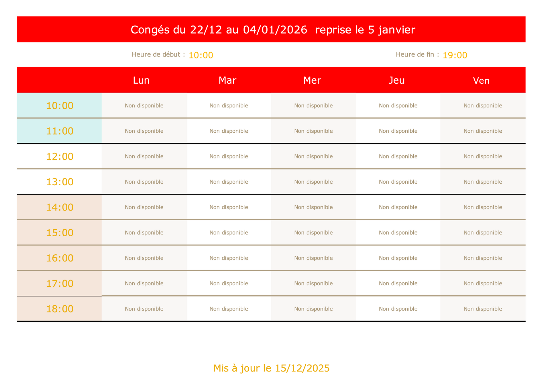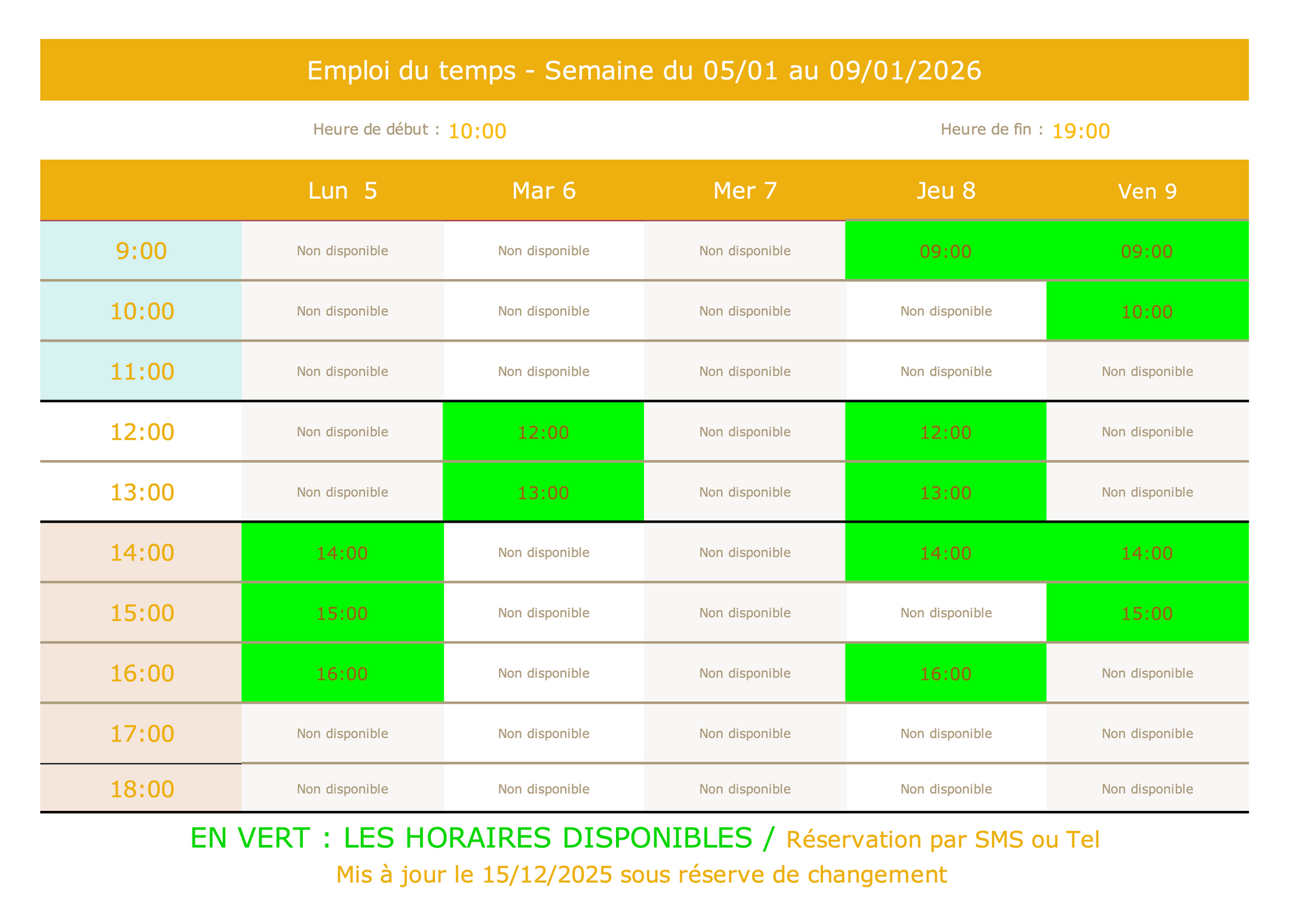 Les horaires disponibles sont en
